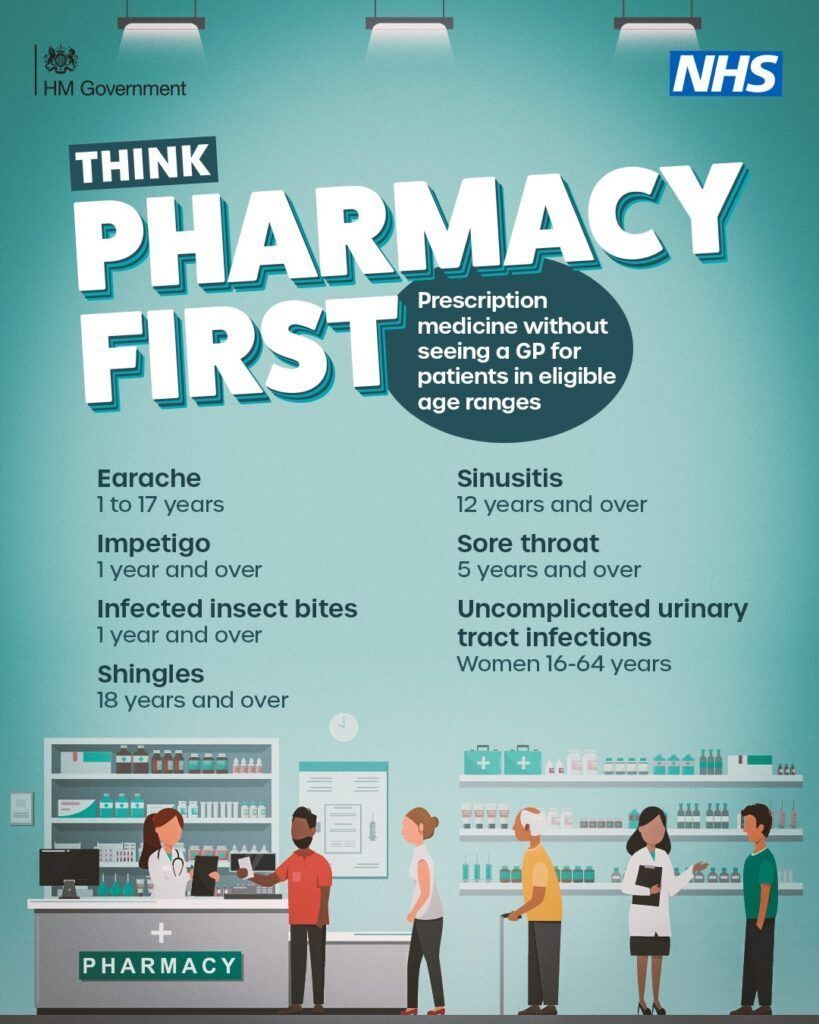 The NHS Pharmacy First Scheme allows Pharmacists to offer expert guidance and recommend appropriate treatments including antibiotics for various common ailments, without the need for a prescription from a doctor.